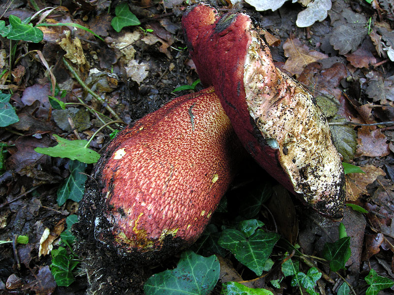 Reticolo sul gambo di Rubroboletus rubrosanguineus; foto di Massimo Mantovani