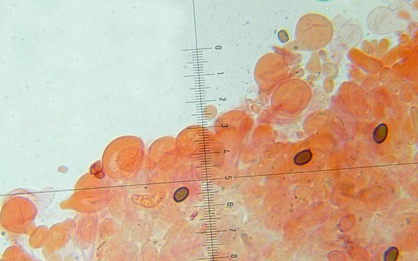 Rivestimento pileico con ife diverticolate e trama con ife cilindracee vescicolose.