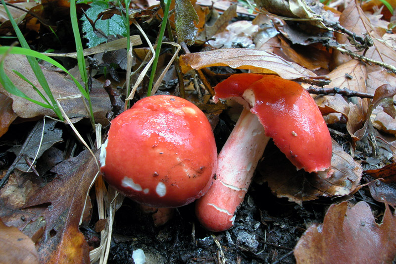 Rese brillanti dalla pioggia appena caduta: Russula lepida = Russula rosea; foto di Pietro Curti