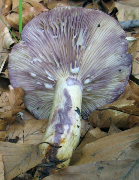 Latice scarso, di colore rosso sangue, immutabile: non vira al verde né lasciato essiccare sulle lamelle né se isolato. Lactarius sanguifluus var. violaceus (Barla) Basso; foto di Alessandro Francolini
