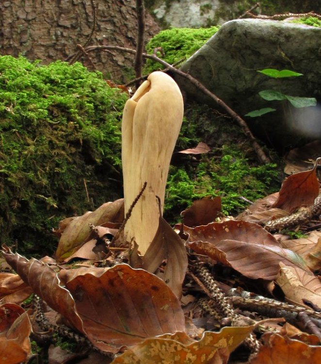 # C. pistillaris ha colori giallo-ocra pallido o giallo-arancio; cresce sotto latifoglia (soprattutto presso Faggio, ma non esclusivamente); ha carne da dolce ad amarognola; ha reazione nulla al KOH.