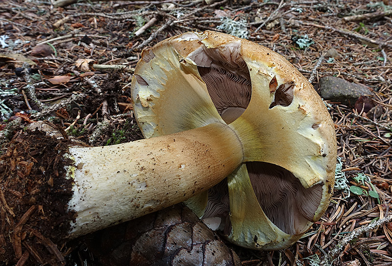 Velo parziale che si sta lacerando a partire dal margine pileico, poco prima di "trasformarsi" nell'anello che si depositerà sul gambo.