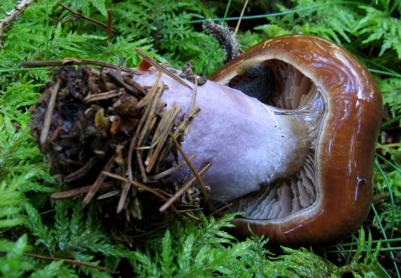 Giovani esemplari molto glutinosi di Cortinarius collinitus; foto di Tomaso Lezzi