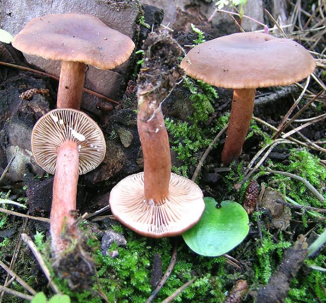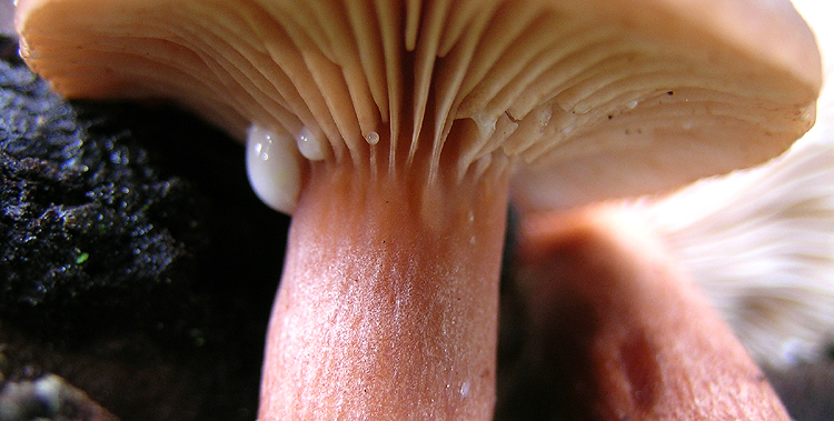 Lactarius hepaticus Plowr.; possiede latice abbondante e fluido, color bianco o crema, immutabile su lamelle ma molto ingiallente se isolato;