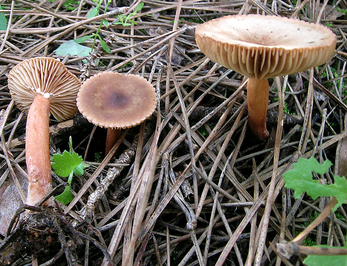 Lactarius hepaticus; fungo di piccole dimensioni, secerne latice abbondante, senza odori particolari: nè cimice, nè pelargonium, nè frutta. Cresce sotto Pino, nel periodo tardo-autunnale. Foto e commento di Franco Sotgiu